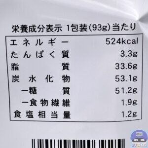内容量は93g、カロリーは524kcalです。