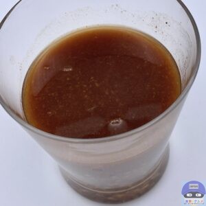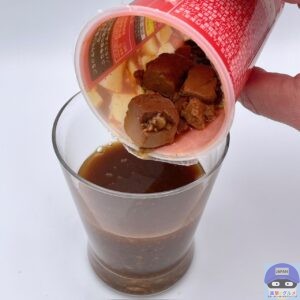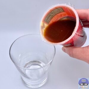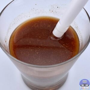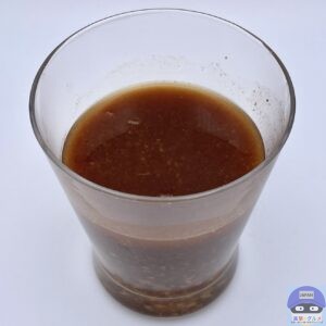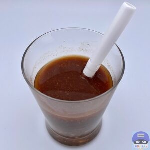 新感覚のドリンク「飲む麻婆豆腐」、黒酢のような香りがします。