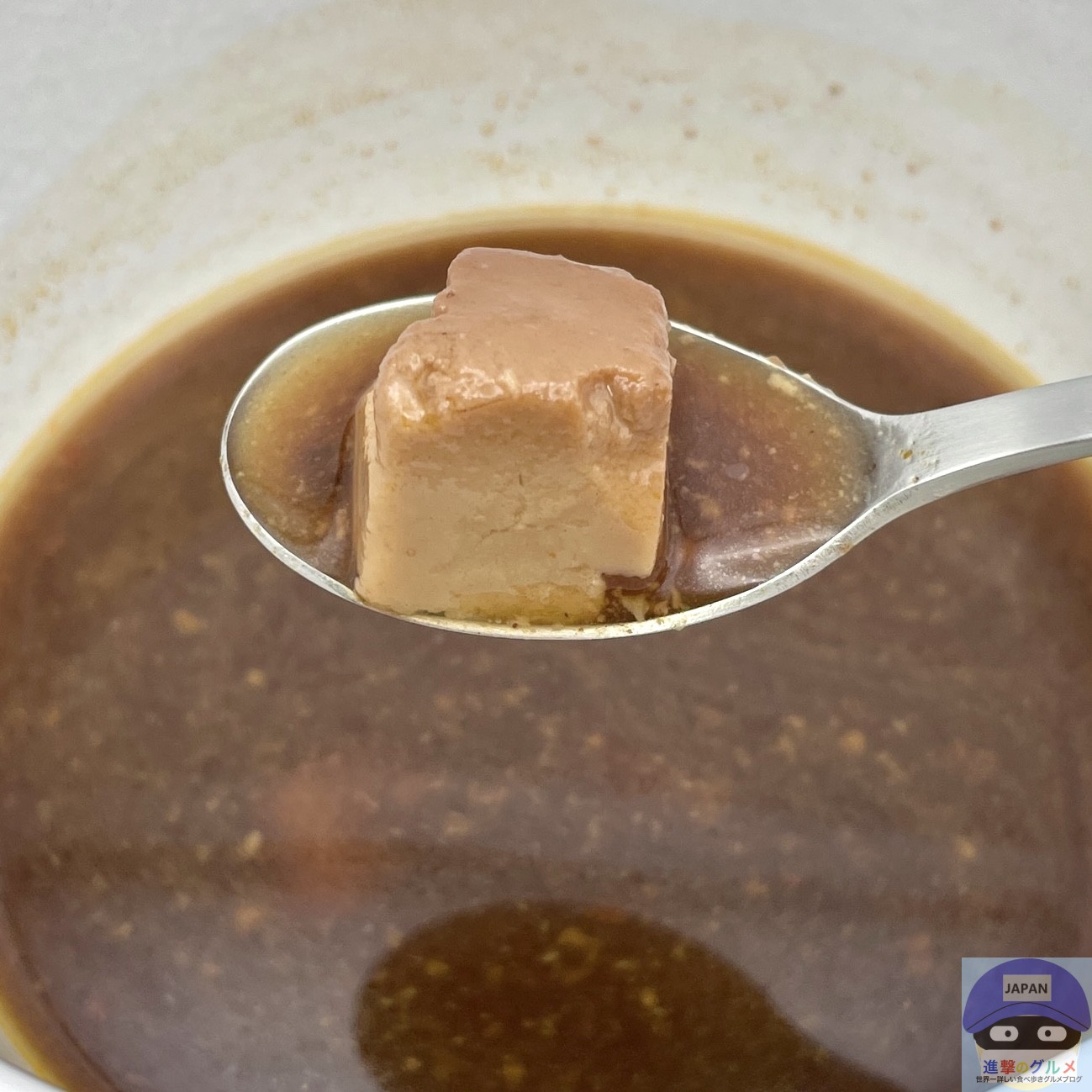 とろみのない冷たい液体に、豆腐と粒状大豆たん白(挽肉のかわり)が合わさった口当たりが個人的に「かなり悪い」です。