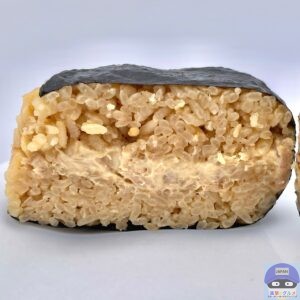 出汁と醤油ベースの調味液と一緒に炊いたご飯(国産米)、シーチキンマヨネーズ、海苔で作られています。