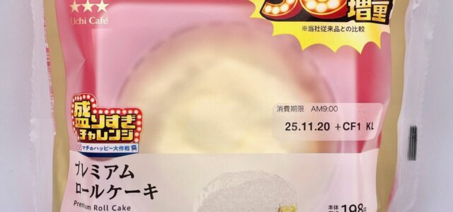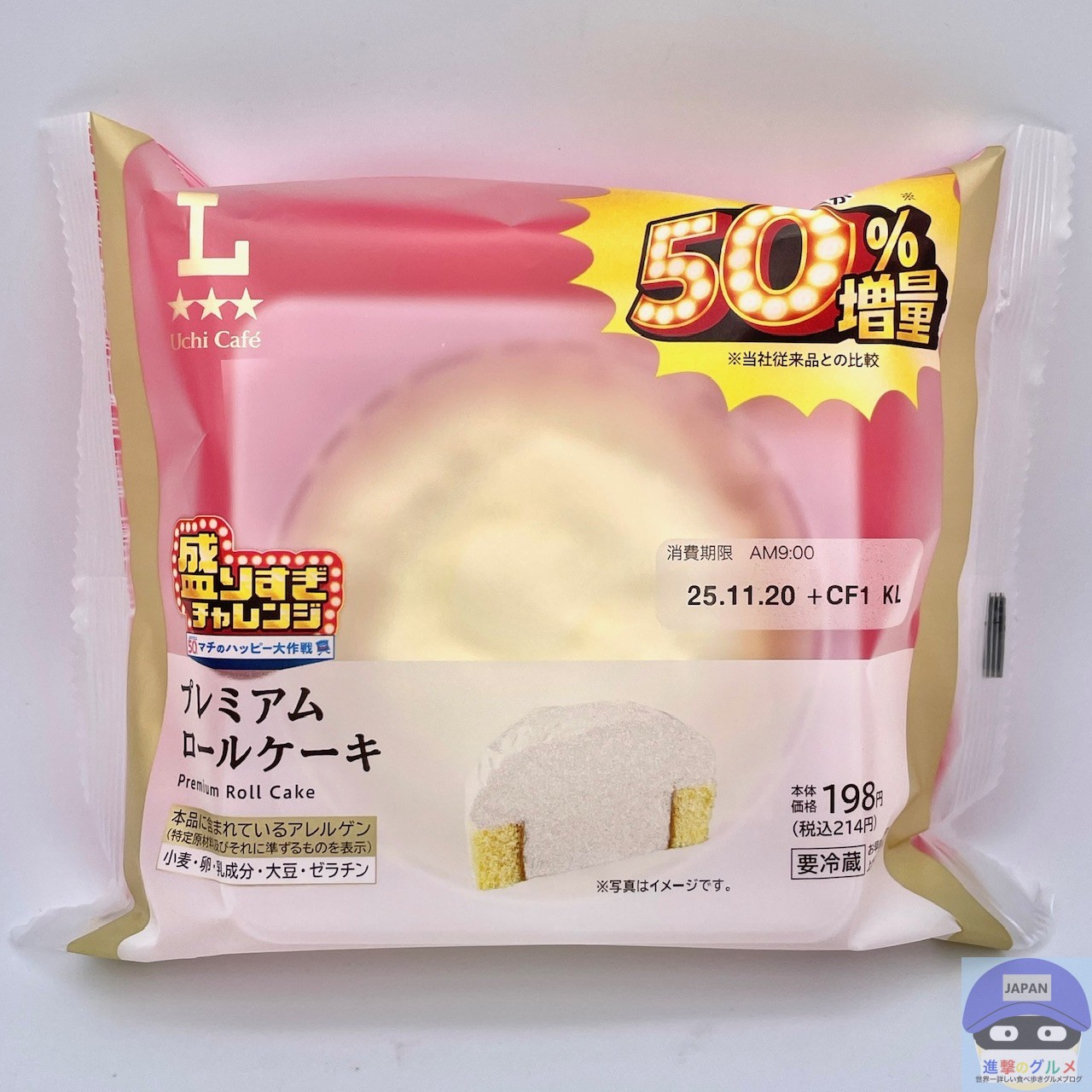 2025年11月17日、ローソンが新作スイーツ「盛りすぎ!プレミアムロールケーキ(214円)」を発売しました。