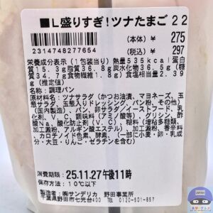 「盛りすぎ!ツナたまごサンド(297円)」