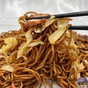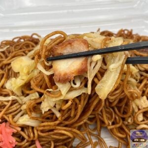 総重量600gオーバー、ジューシーでコクのある甘めのソースが香ばしく食欲をそそる、ボリューム満点の焼きそばです。