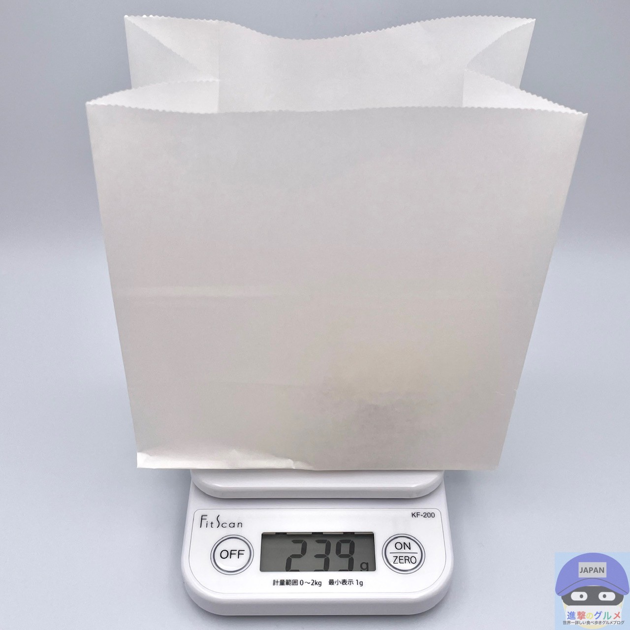 重さをはかると、紙袋を含めて239gでした。
