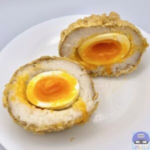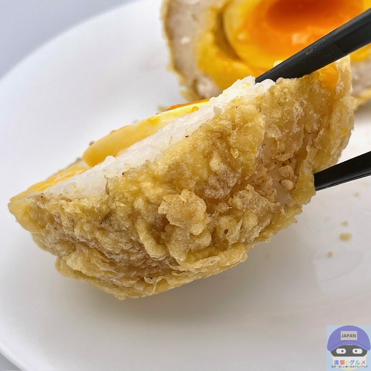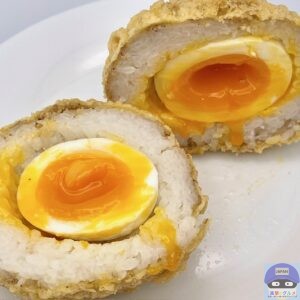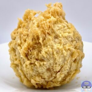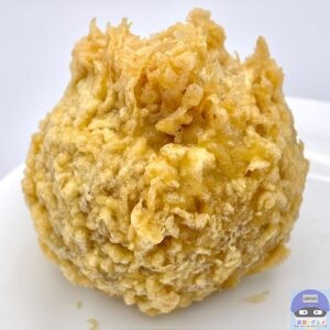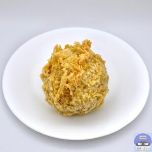 半熟玉子を白米でつつみ、白ごまとすりごまをまぶして天ぷら粉で揚げた丸亀製麺史上最大級のおむすびで、一つ食べれば元気になること間違いありません。