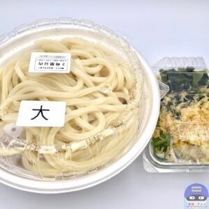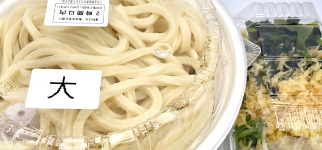 今回は、定番メニュー「かけうどん・大盛り(630円)」、「容器代(+50円)」を注文してテイクアウトしました。