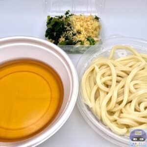 大盛りうどん、だし、薬味・トッピングが分かれています。
