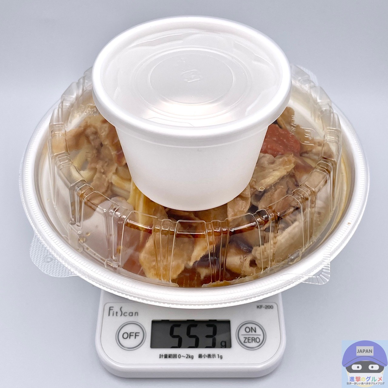 重さをはかると、容器を含めて553gでした。
