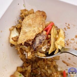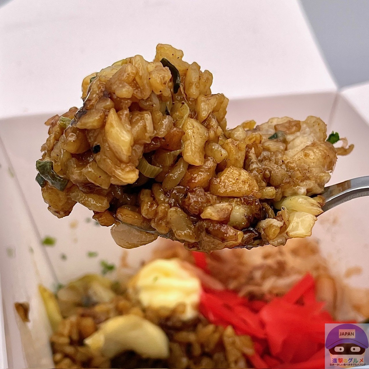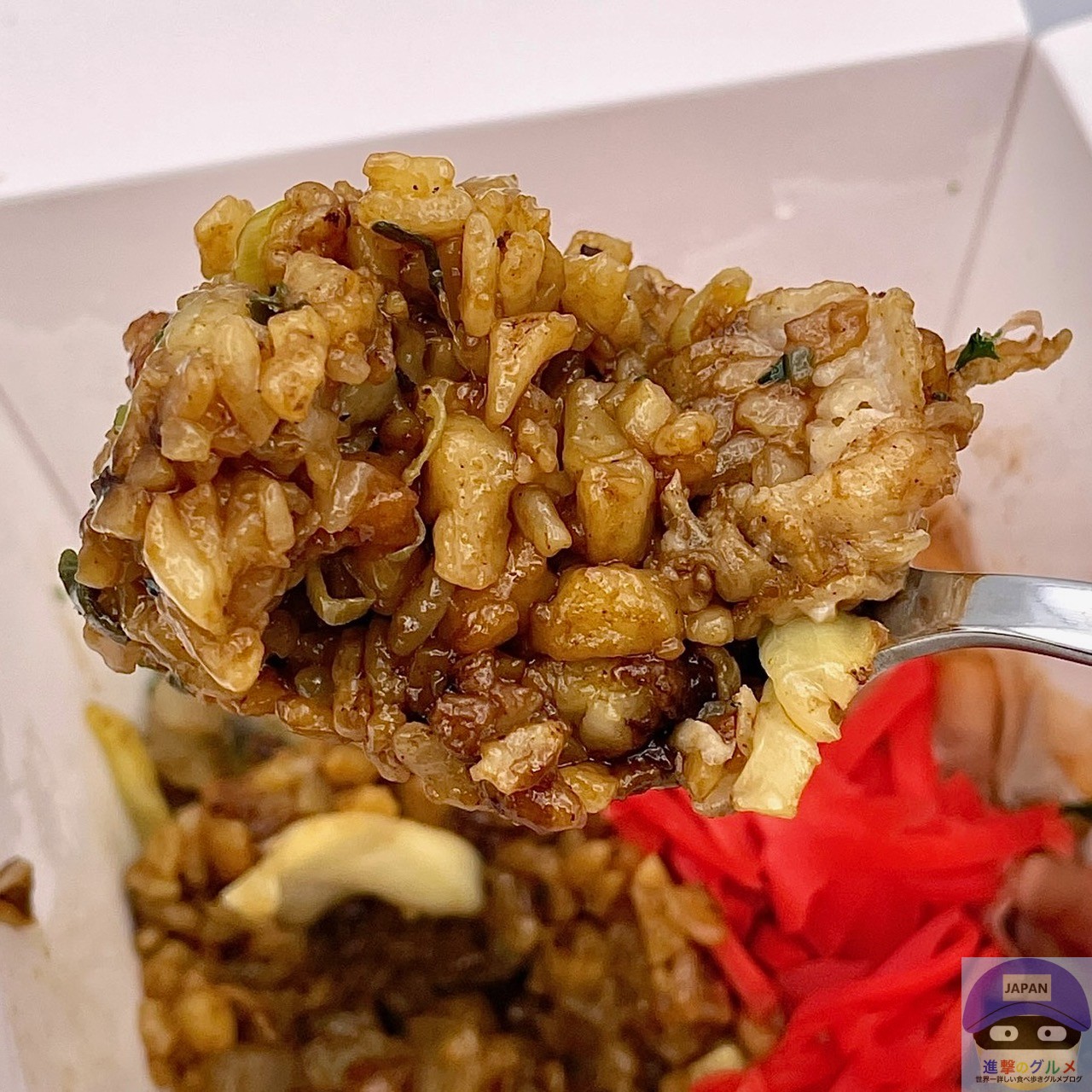 少しもちっとしたうどん、ご飯を合わせた「濃厚ソース焼きそば」のようなB級グルメ感のある馴染みの味わい、うどんとご飯の組み合わせに違和感はありません。