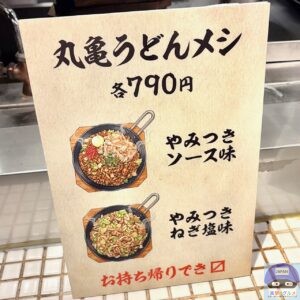 先行販売の期間中は、「丸亀うどんメシ やみつきソース味(790円)」と「丸亀うどんメシ やみつきねぎ塩味(790円)」のみを販売しています。