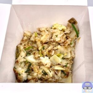 ピリッとコショウが少し効いた野菜炒め風の塩味、個人的に「まかない」「家で作る家庭的な焼き飯」のような味わいです。