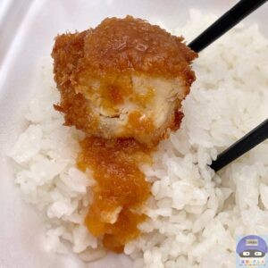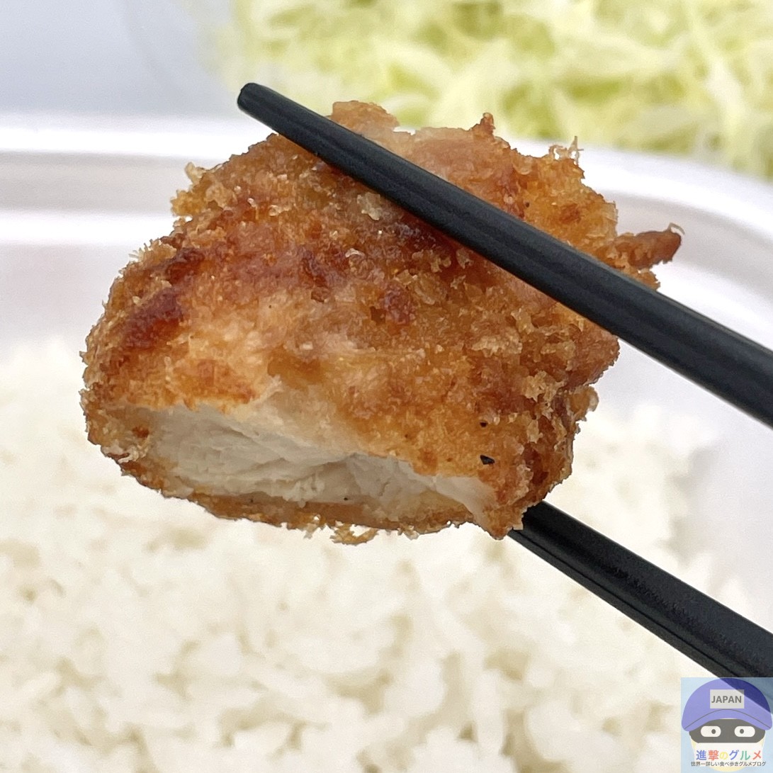 衣がサクサクッと香ばしく、肉肉しくてやわらかめの肉質、少し味付けされた豚肉の旨みを感じます。