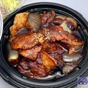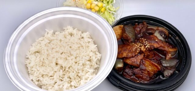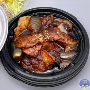 今回は、「厚切り豚カルビと茄子の辛味噌炒め定食・ライス特盛(980円)」を注文してテイクアウトします。
