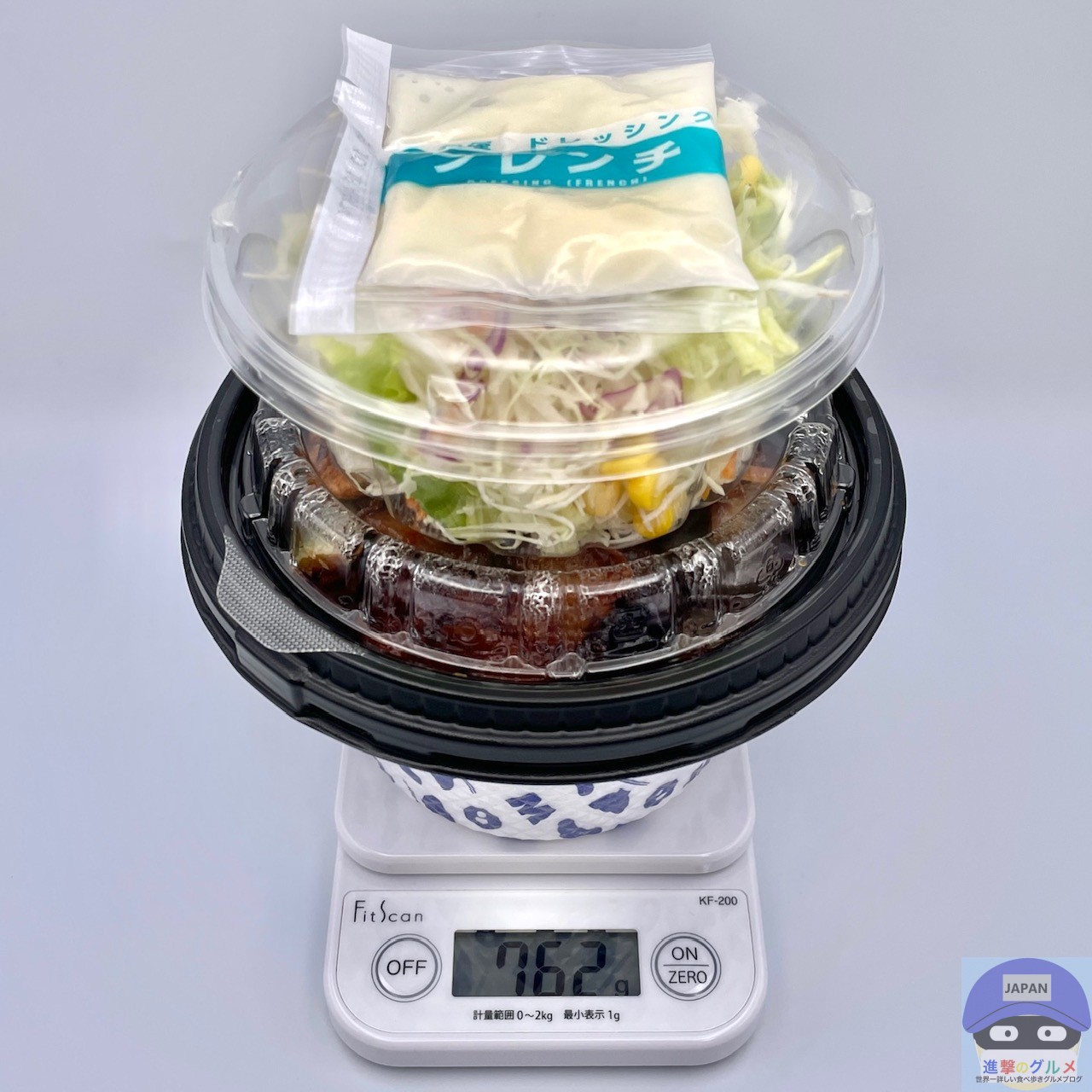 重さをはかると、容器を含めて762gでした。