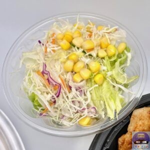サラダ、特盛ライスです。