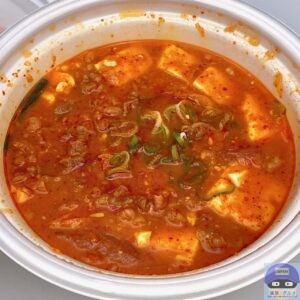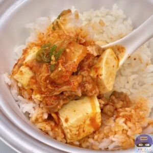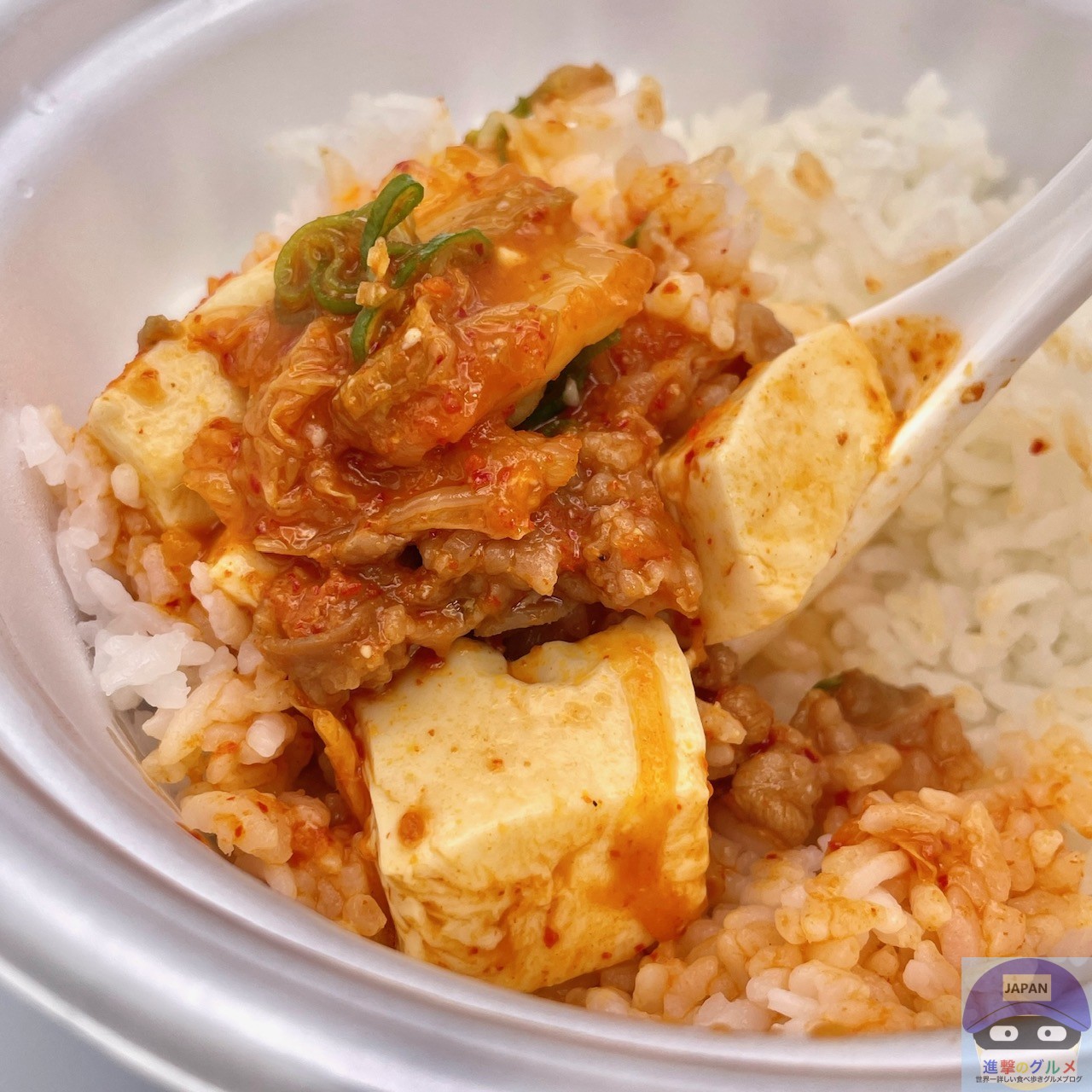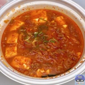 なめらかな豆腐たっぷりで食べごたえ抜群、キムチと青ねぎのシャキッと食感がアクセントです。