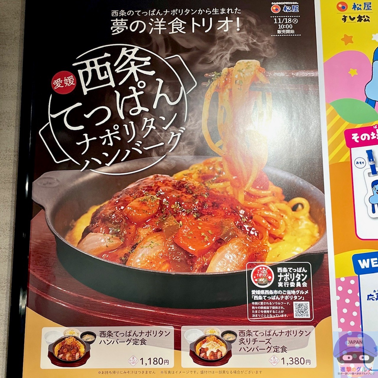2025年11月18日より、「松屋」が新メニュー「西条てっぱんナポリタンハンバーグ」を販売開始しました。