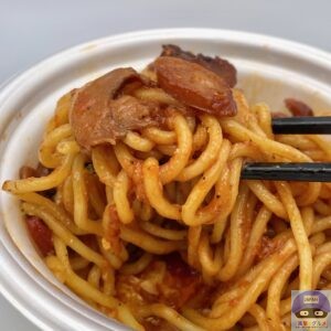 もっちり程よく噛みごたえがあって麺自体の旨みを感じ、甘めのソースがクセになります。
