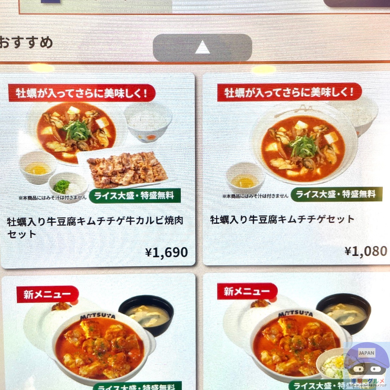 【松屋】牡蠣入り牛豆腐キムチチゲセット・半熟玉子【期間限定メニュー】