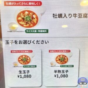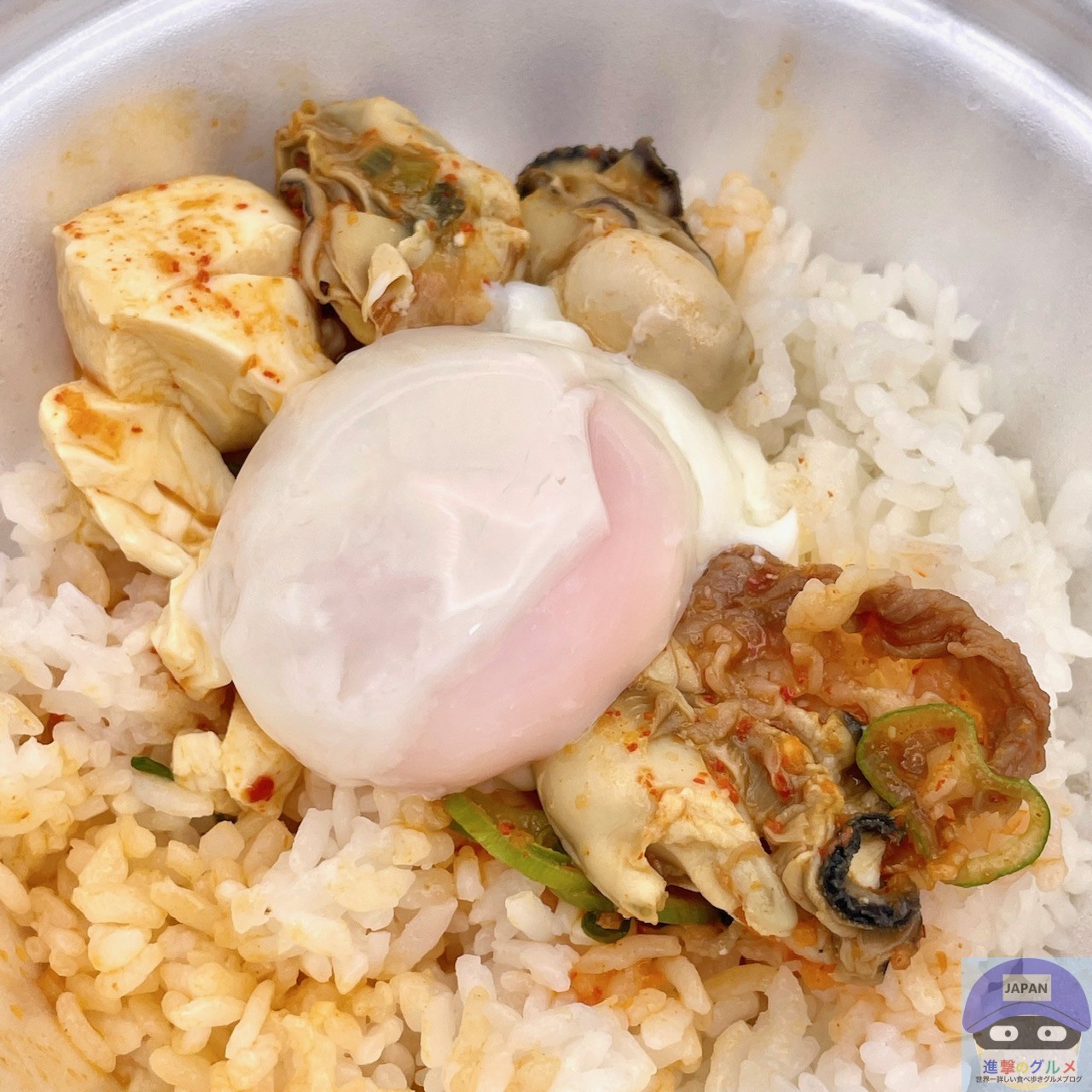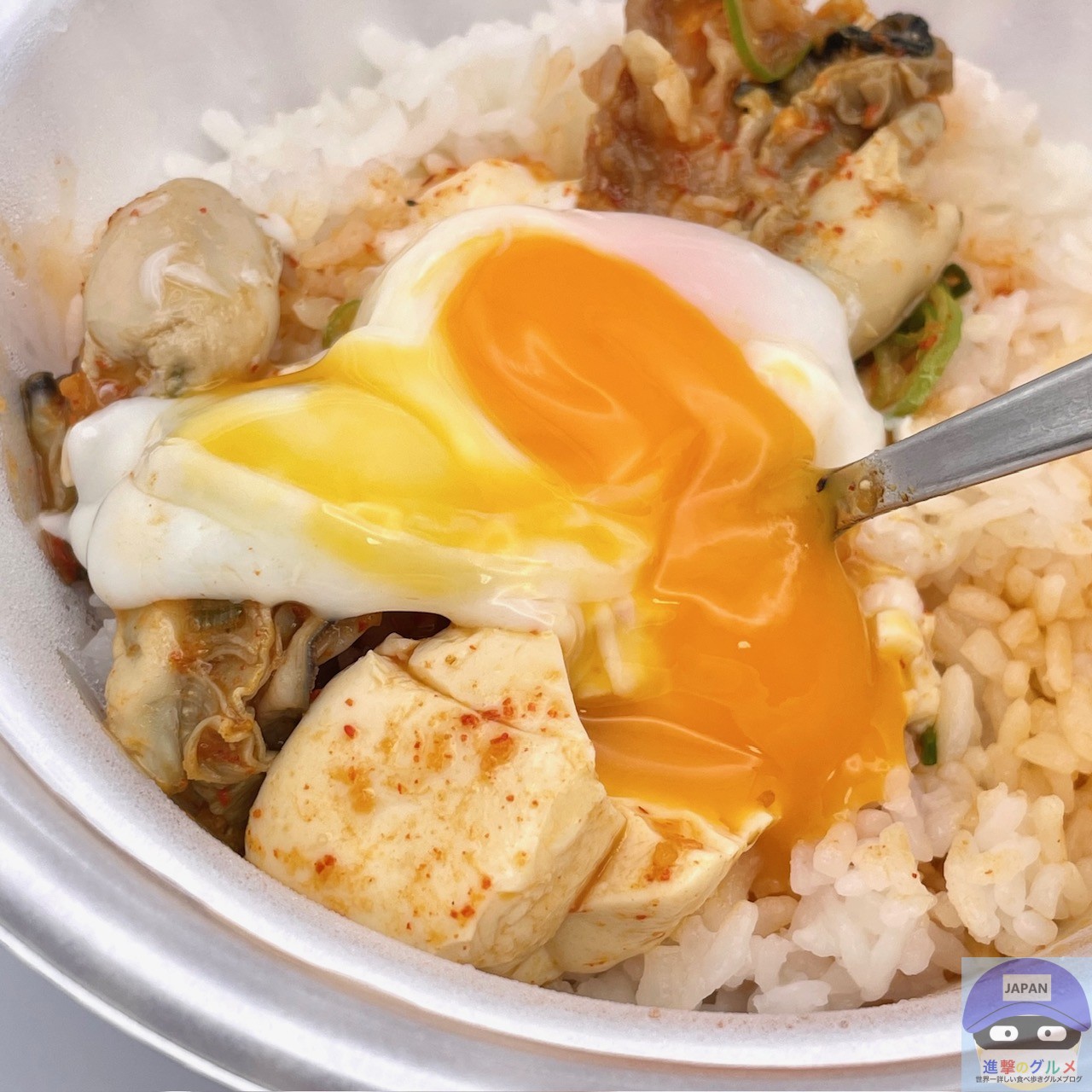 「牡蠣入り牛豆腐キムチチゲセット・半熟玉子・ライス特盛(1080円)」