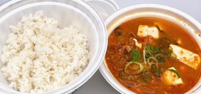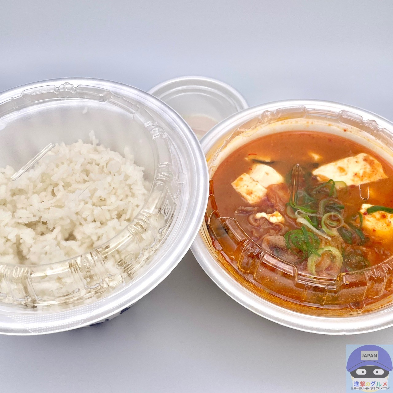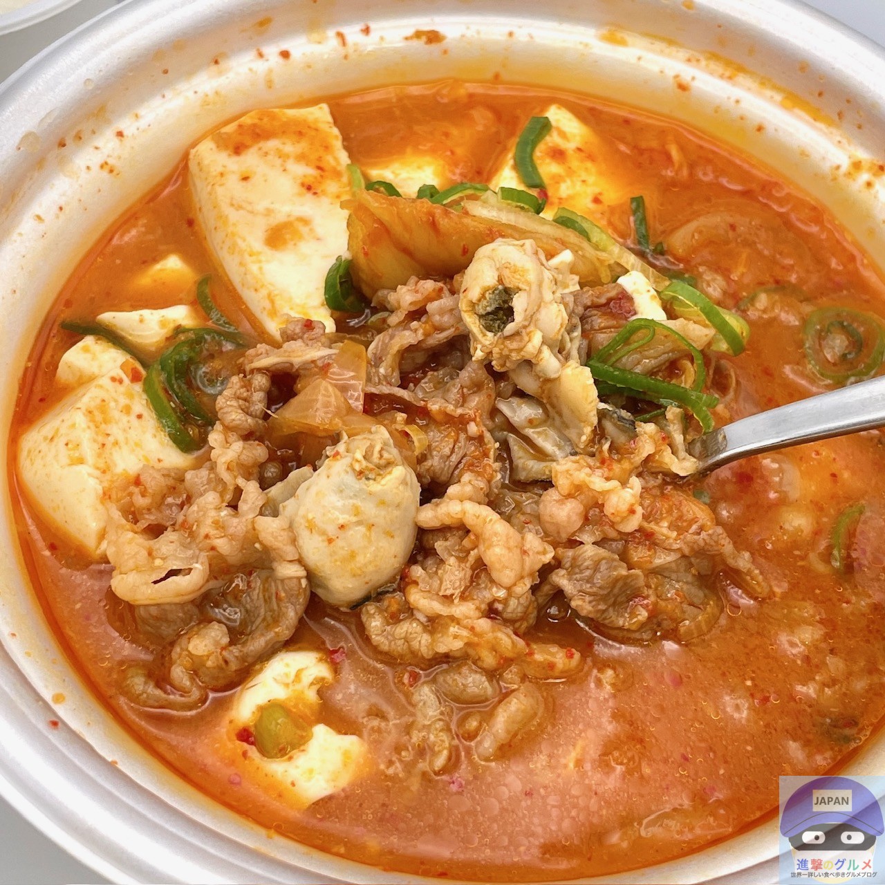 今回は、「牡蠣入り牛豆腐キムチチゲセット・半熟玉子・ライス特盛(1080円)」を注文してテイクアウトします。