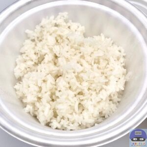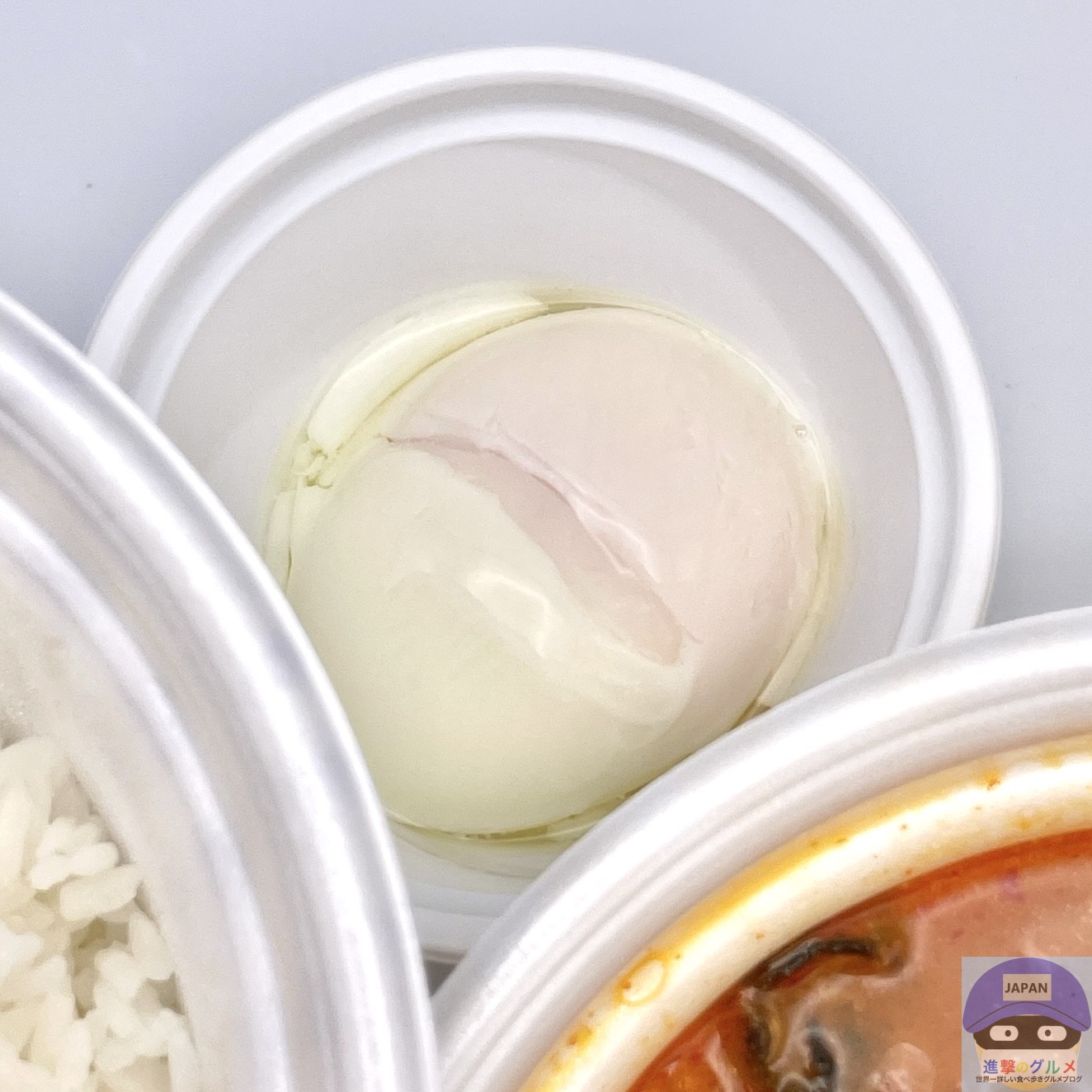 ライスに具材を盛りつけ、冷たい半熟玉子をのせます。