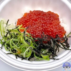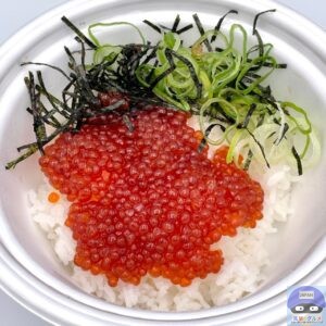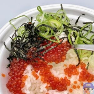 ごはん、いくら、青ネギ、刻み海苔の組み合わせです。