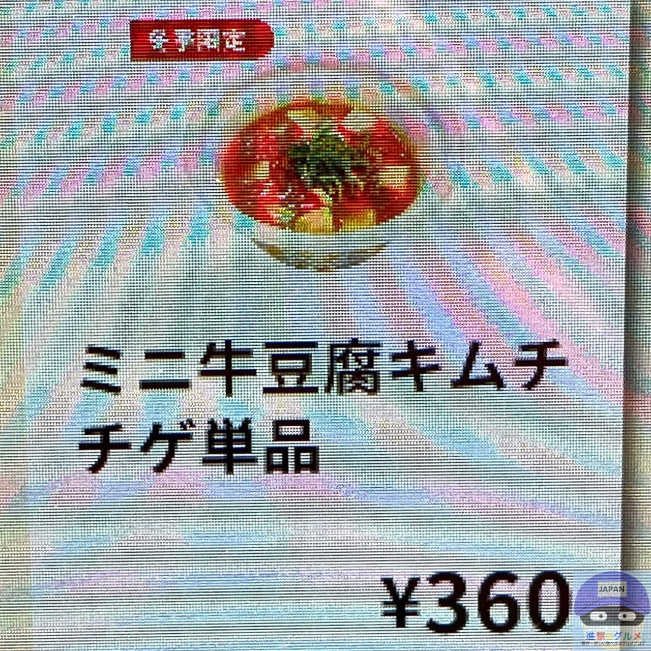 「牛めし・並盛(460円)」、「ミニ牛豆腐キムチチゲ(360円)」で合計820円のため、単品注文より30円お得です。