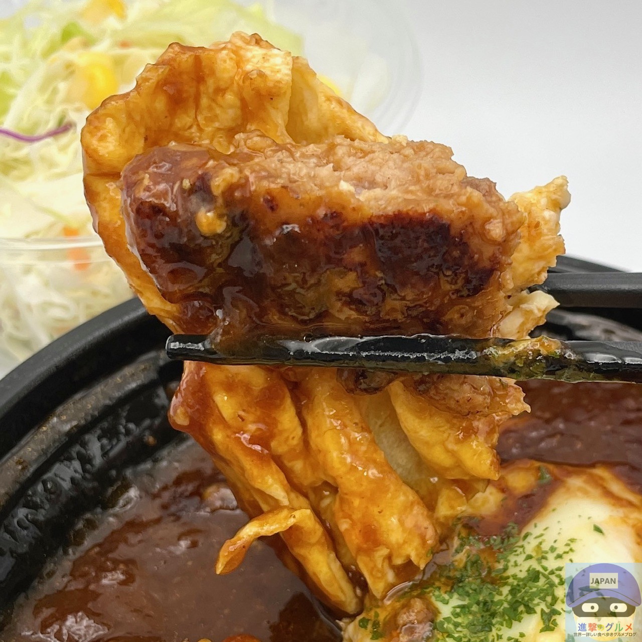 一口頬張れば、濃厚なデミグラスソースと、溢れ出す肉汁がオムレツとともに絡み合い、口いっぱいに幸せが広がります。