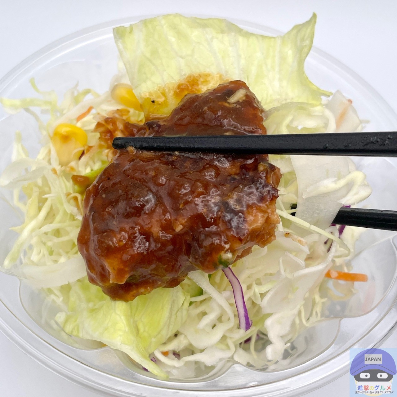 程よい柔らかさでややジューシー、粗挽きの部分が肉肉しい、味付けされたお肉の旨みを感じます。