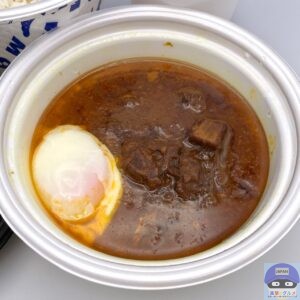ハンバーグ創業ビーフカレー、半熟玉子です。