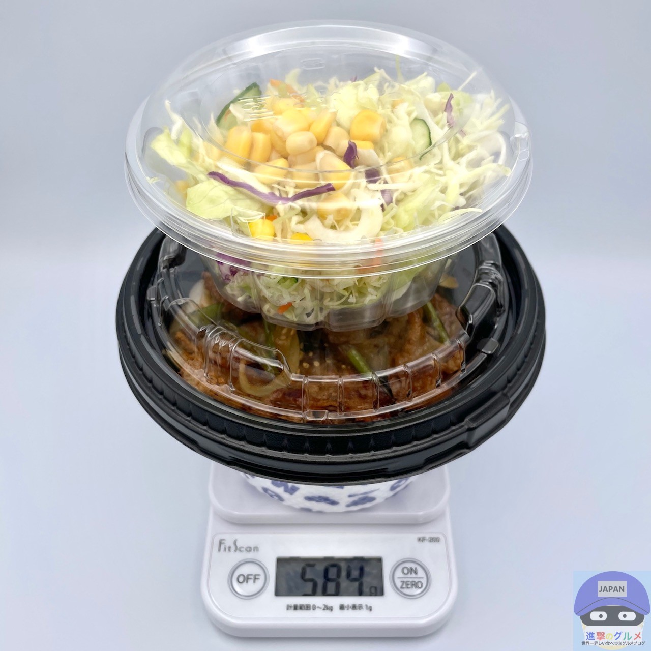 重さをはかると、容器を含めて584gでした。