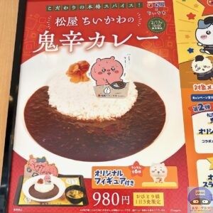 2026年2月17日より、「松屋」が「ちいかわコラボ」第2弾の新メニュー「ちいかわの鬼辛カレー(980円)」を販売開始しました。