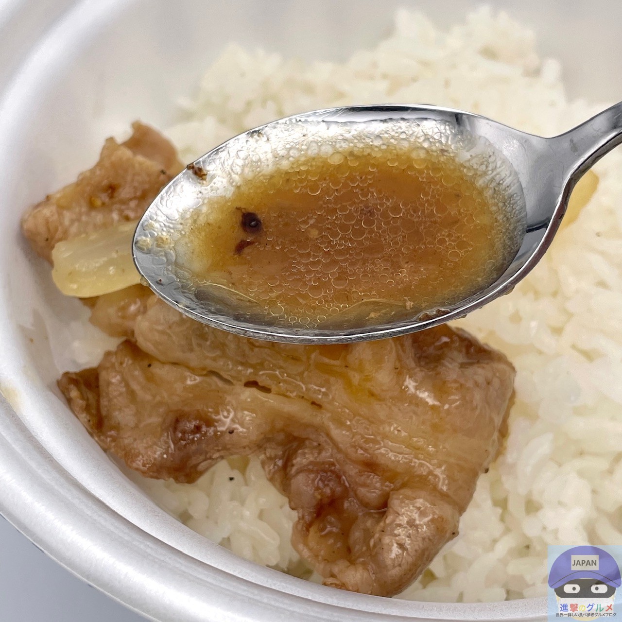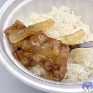 肉肉しくて噛みごたえのある牛肉の香ばしい旨み、脂身の甘みを感じ、シャキッと玉ねぎがアクセントです。