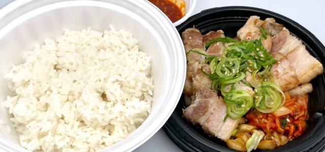 今回は、「サムギョプサル風極厚豚カルビ焼肉・ライス特盛(1080円)」を注文してテイクアウトします。