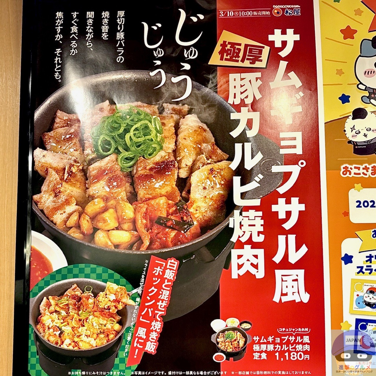 2026年3月10日より、「松屋」が新メニュー「サムギョプサル風極厚豚カルビ焼肉定食」を販売開始しました。