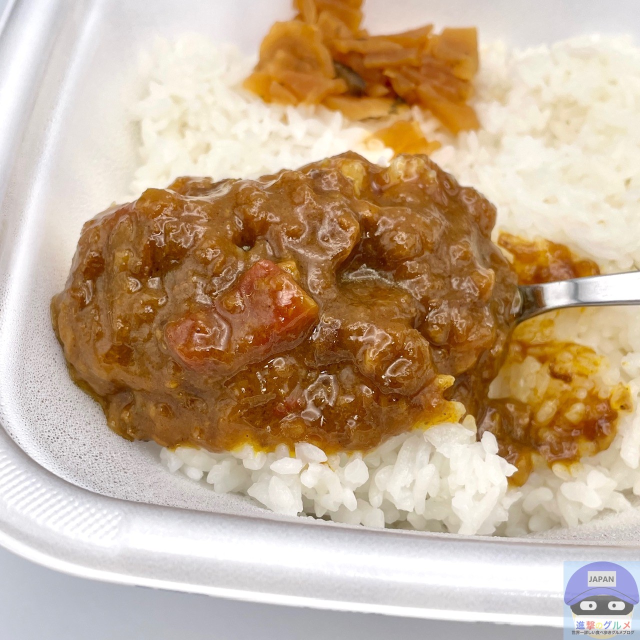 ライスがよくすすんで食べごたえ抜群、カリッと福神漬けで少しさっぱりします。