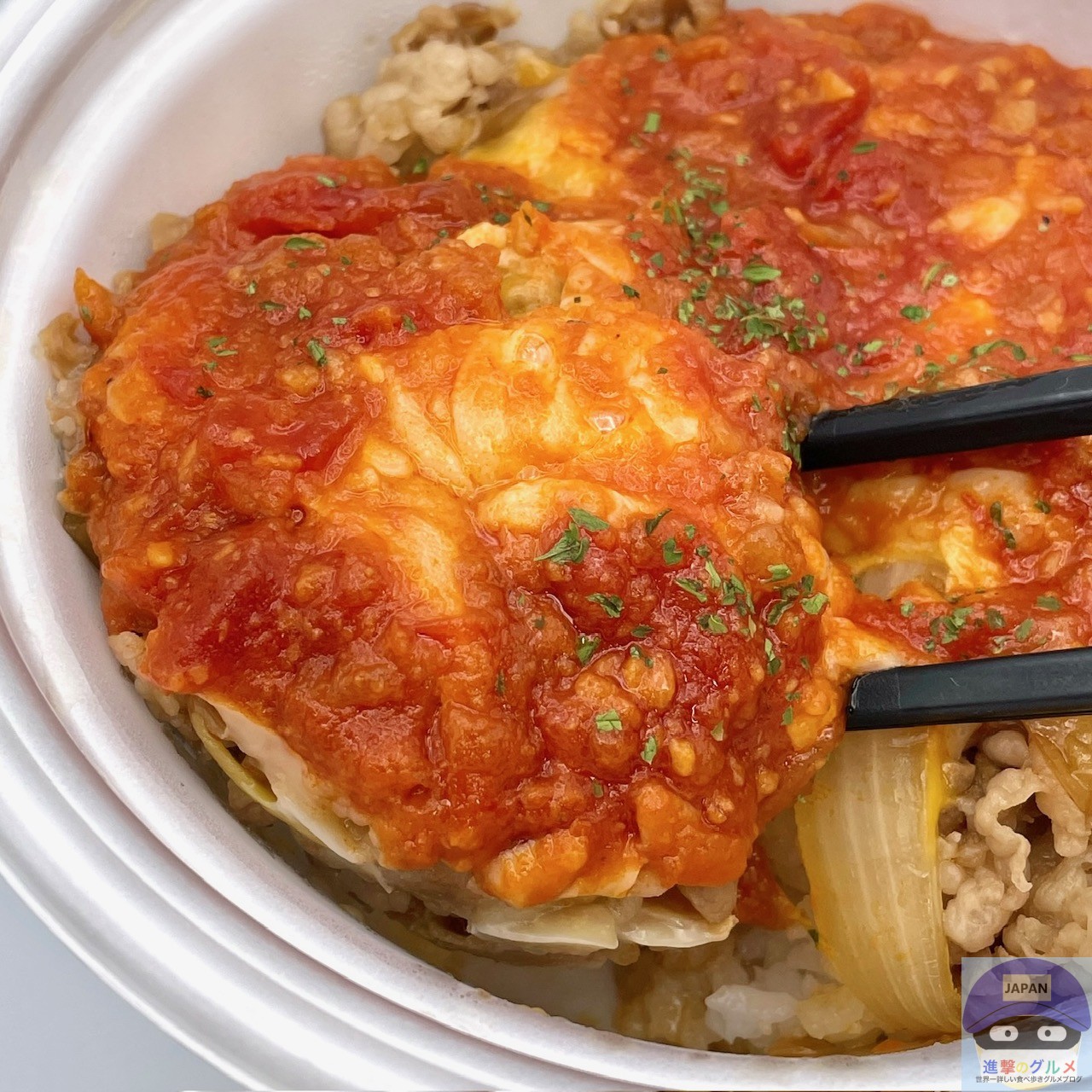 うまトマソースが牛めしのお肉とチーズに絡み合い、一口食べれば止まらない美味しさに仕上げました。