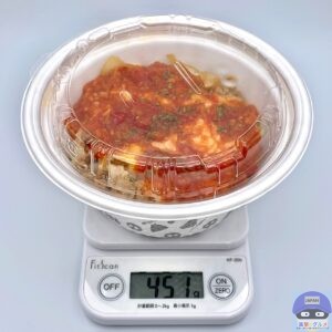 重さをはかると、容器を含めて451gでした。