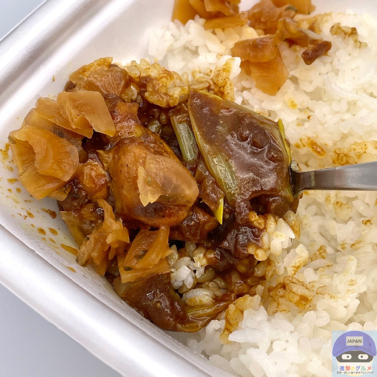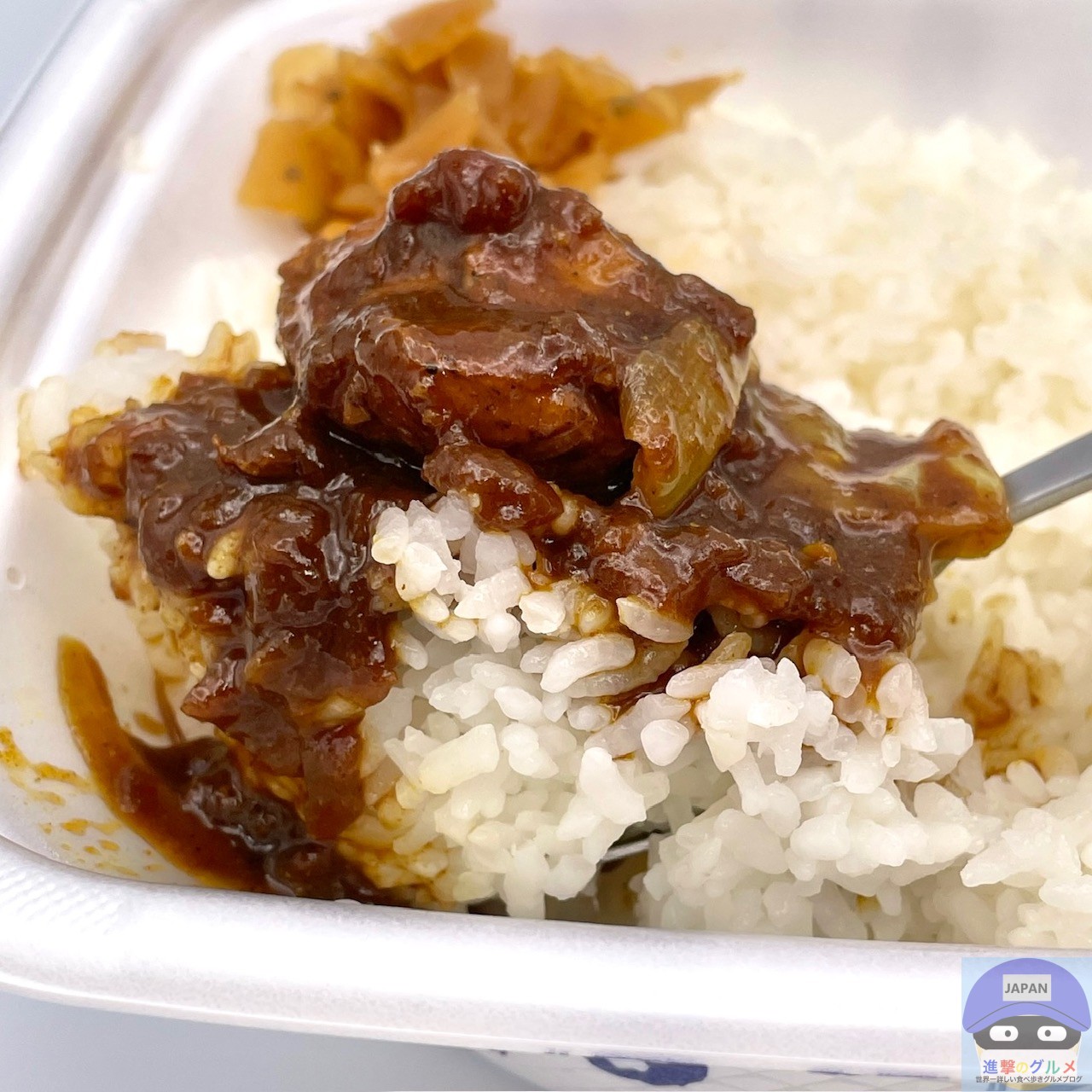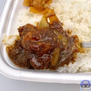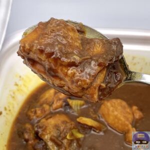 コクと深みのあるスパイシーなカレーソースは、中辛と辛口の間くらい、ヒリヒリとした辛味が口の中に残ります。