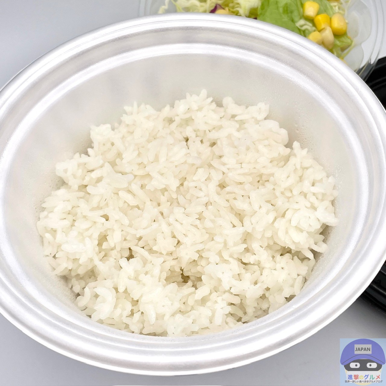 サラダ、特盛ライスです。