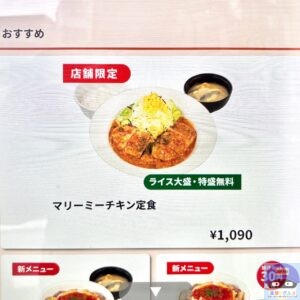 「マリーミーチキン定食・ライス特盛(1090円)」