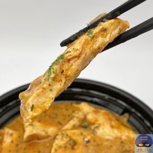 大きめにカットした鶏肉に、ドライトマト・にんにく・生クリーム・スパイスなどを使用した特製ソースをかけています。