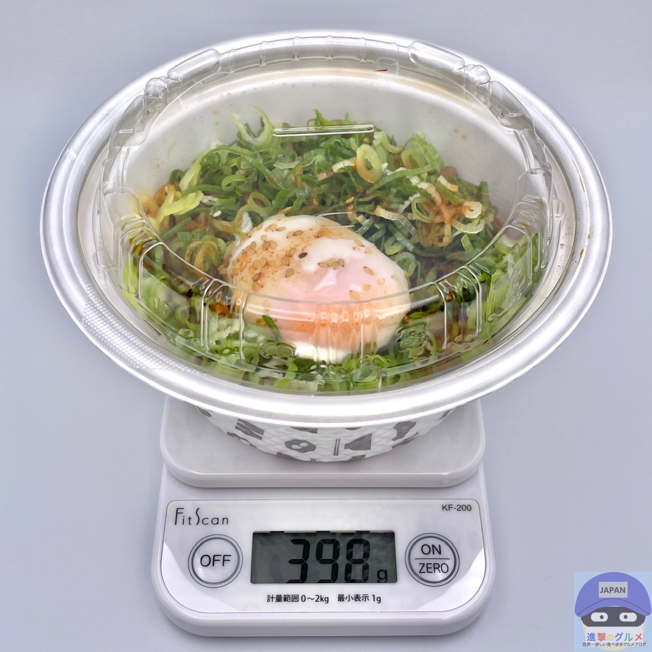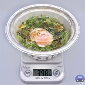 重さをはかると、容器を含めて398gでした。