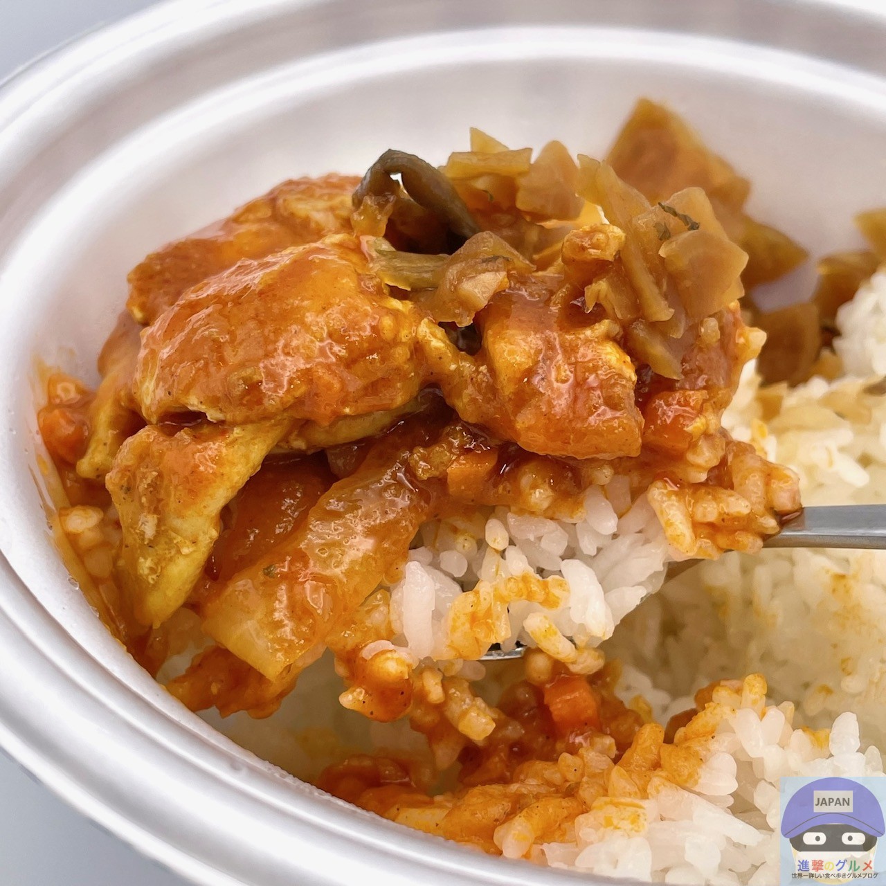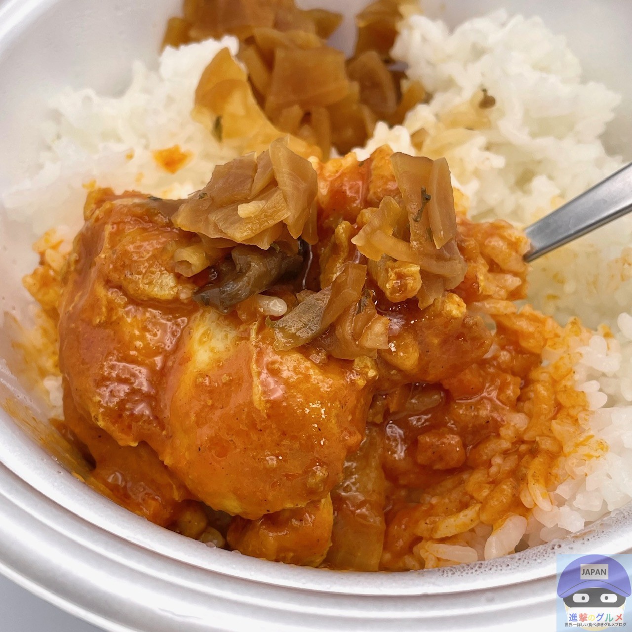 ボリューム満点でバターチキンカレーのような甘みのある香りがします。