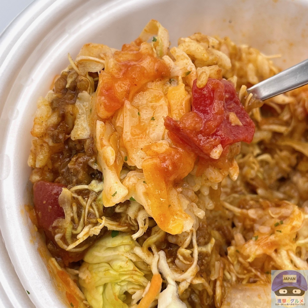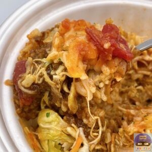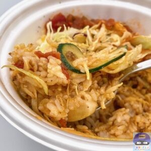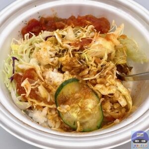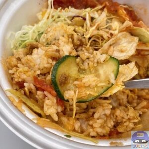 ライスにピリ辛サルサ、たっぷりチーズ、シャキシャキ野菜、ミートソースをトッピングした、混ぜるほど旨いタコライスです。