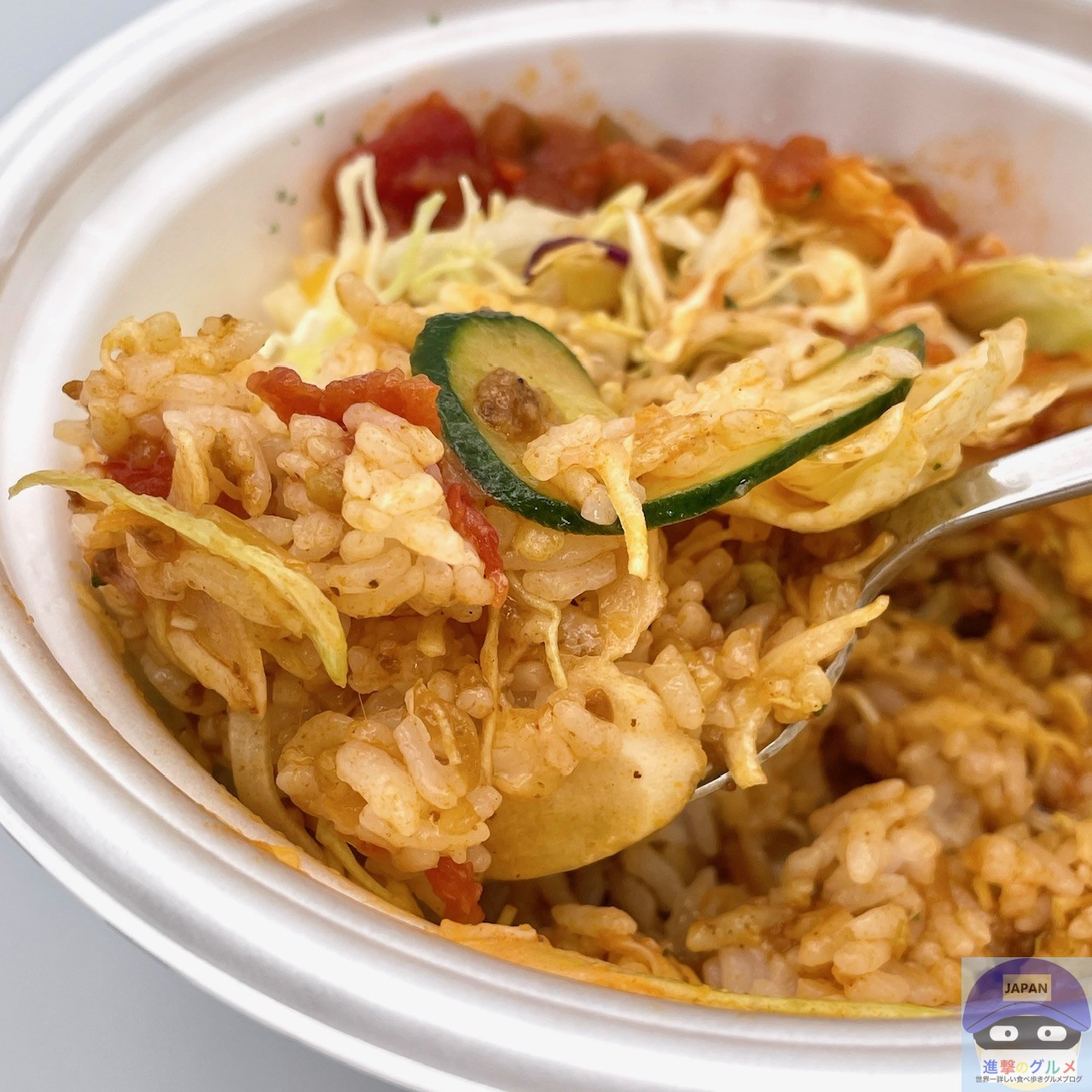 サルサソースの酸味と旨み、ピリピリした中辛と辛口の間くらいの辛味が印象的です。