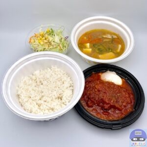 今回は、「うまトマハンバーグ定食・ライス特盛(980円)」、「豚汁(240円)」にしました。