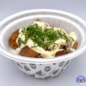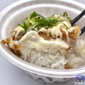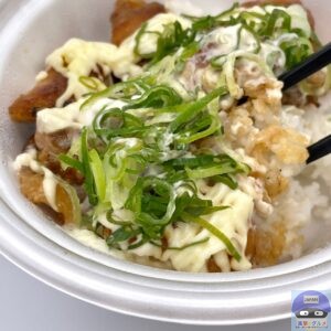 やわらかめの鶏肉の素材の味わい、少し香ばしい照り焼きのような醤油ダレに、多めのマヨネーズのこってりまろやかさが相性抜群です。
