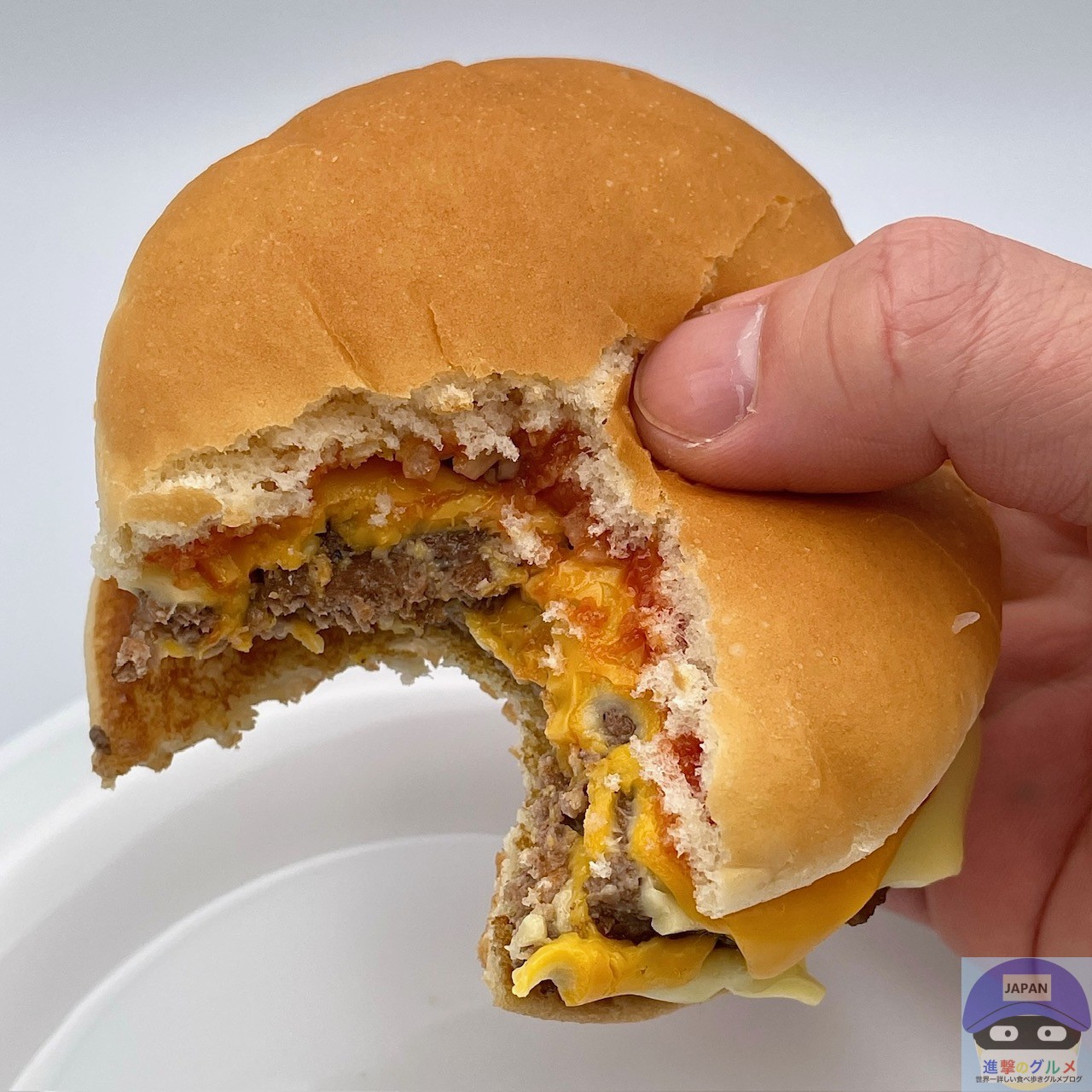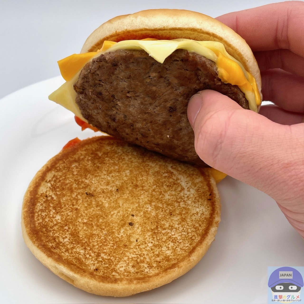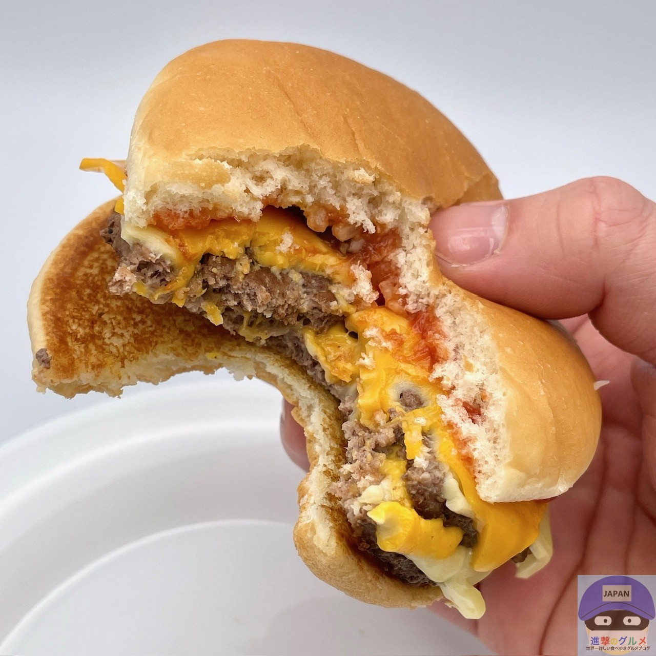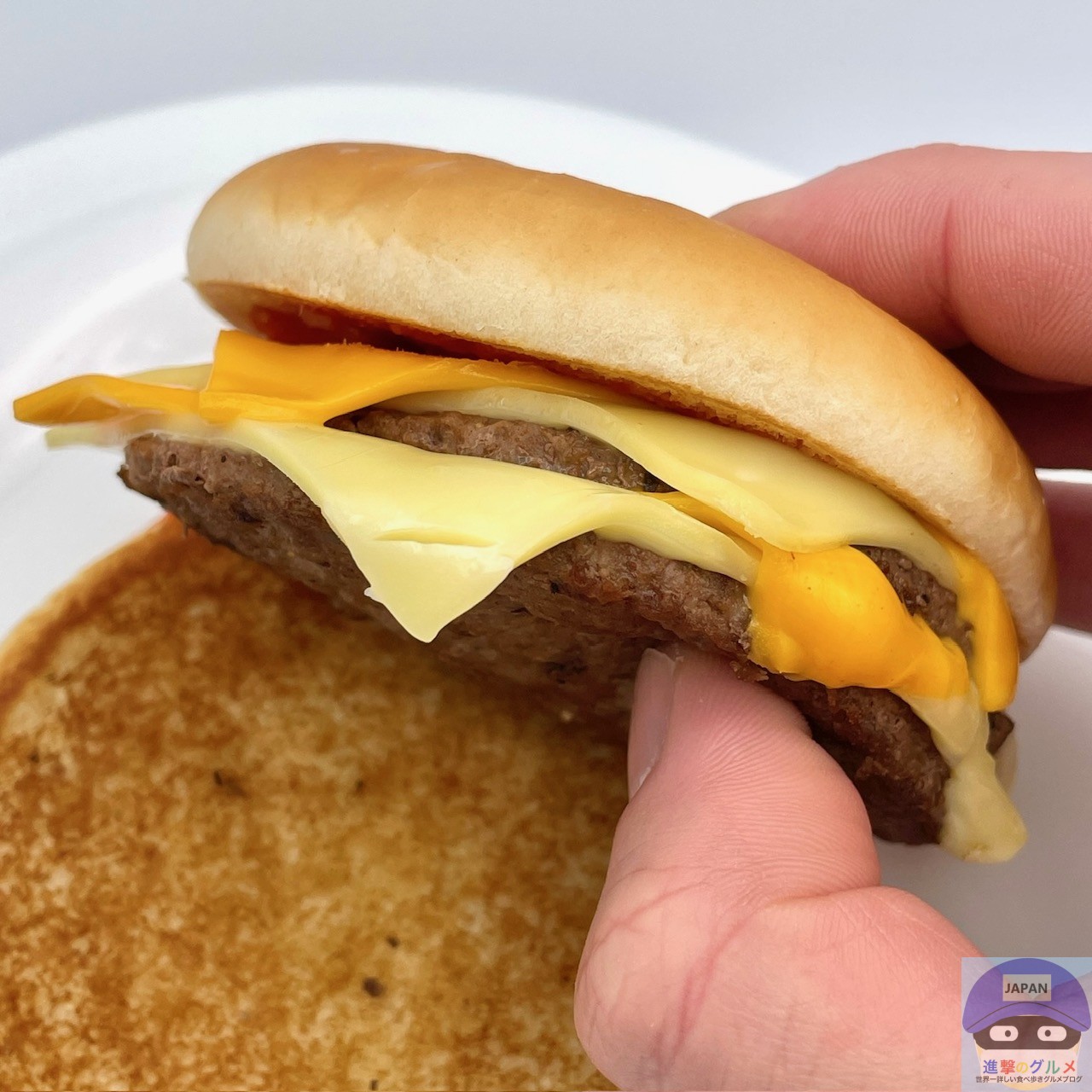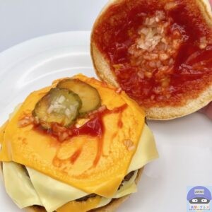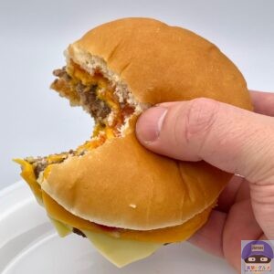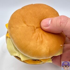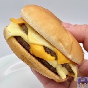 後味にチーズが残るほど存在感があり、ハンバーガーやチーズバーガーなどと同じ、少しパサつきやすいバンズですが、多めのチーズであまりパサつきません。